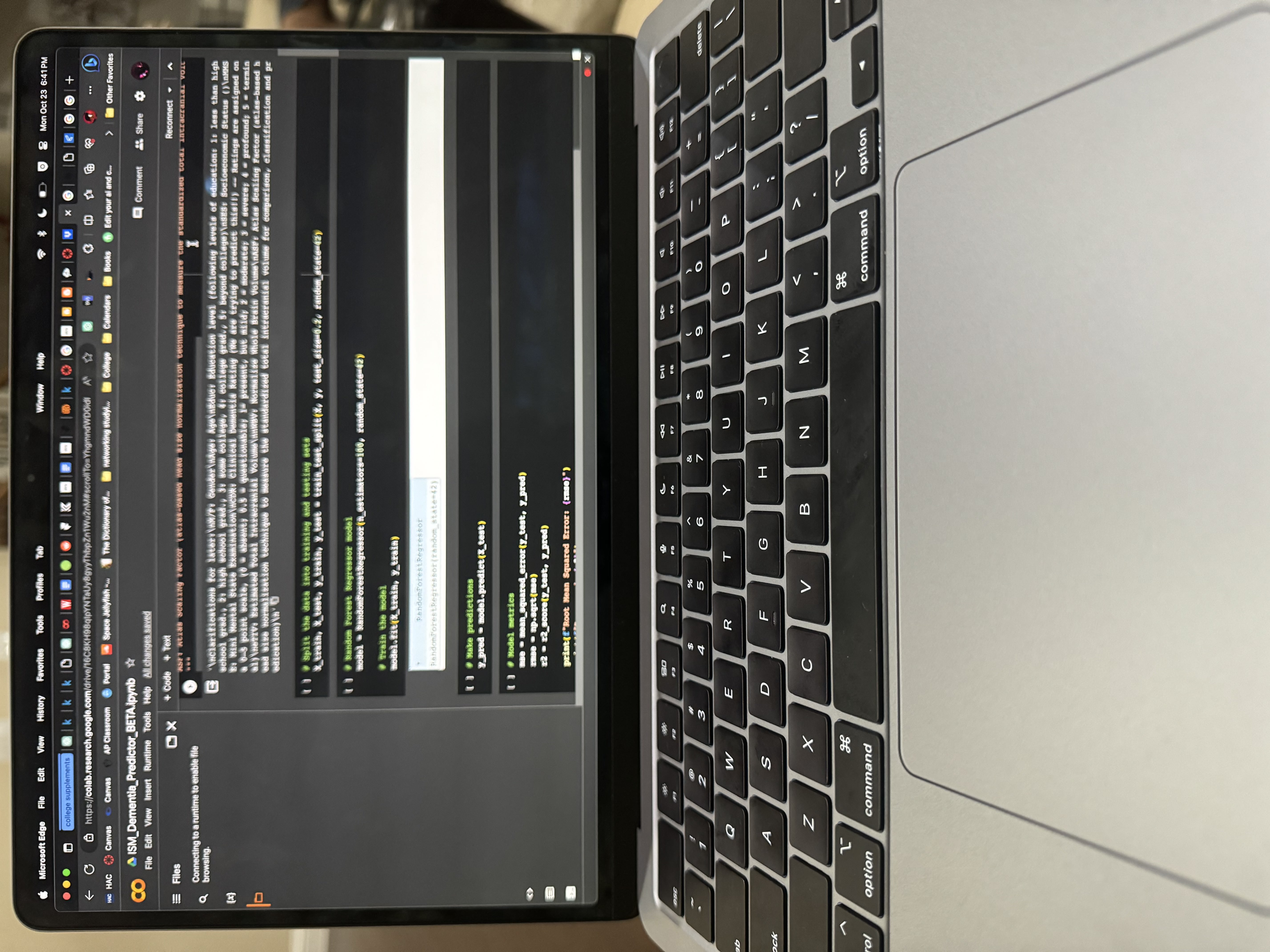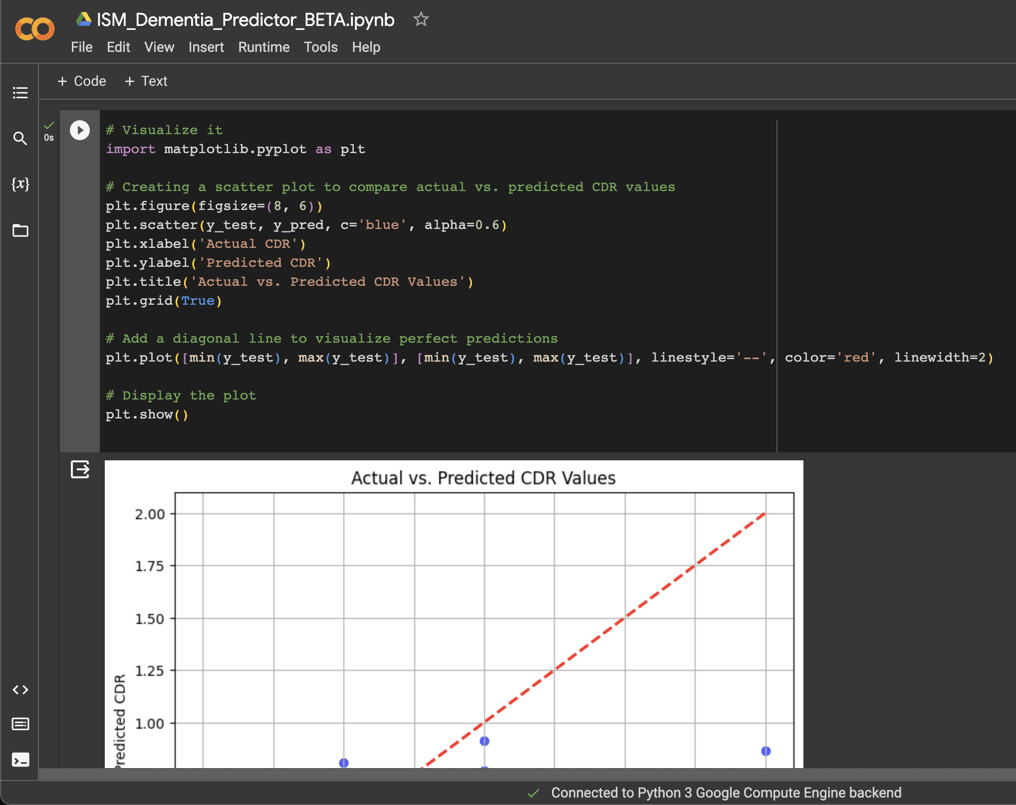In ISM II, I continued off my research the last year. This year I researched and developed a study and abstract over a machine learning model that uses a CSV dataset to attempt to predict Clinical Dementia Ratings, titled Predictive Modeling of CDR Based on Socioeconomic Factors and Neuroimaging Data. I've published this model and my findings to serve as a future baseline for other studies and my own reference. I worked mainly on my own and experimented with the verious technological aspects of the project such as getting a webapp that was functional using my python script. I also worked towards building an iOS app using XCode that could use camera data and other on-board data to build a profile of the user to generate some biomarkers and parameters that may be useful in a diagnosis. This idea wasn't fully ready as part of my final presentation however.